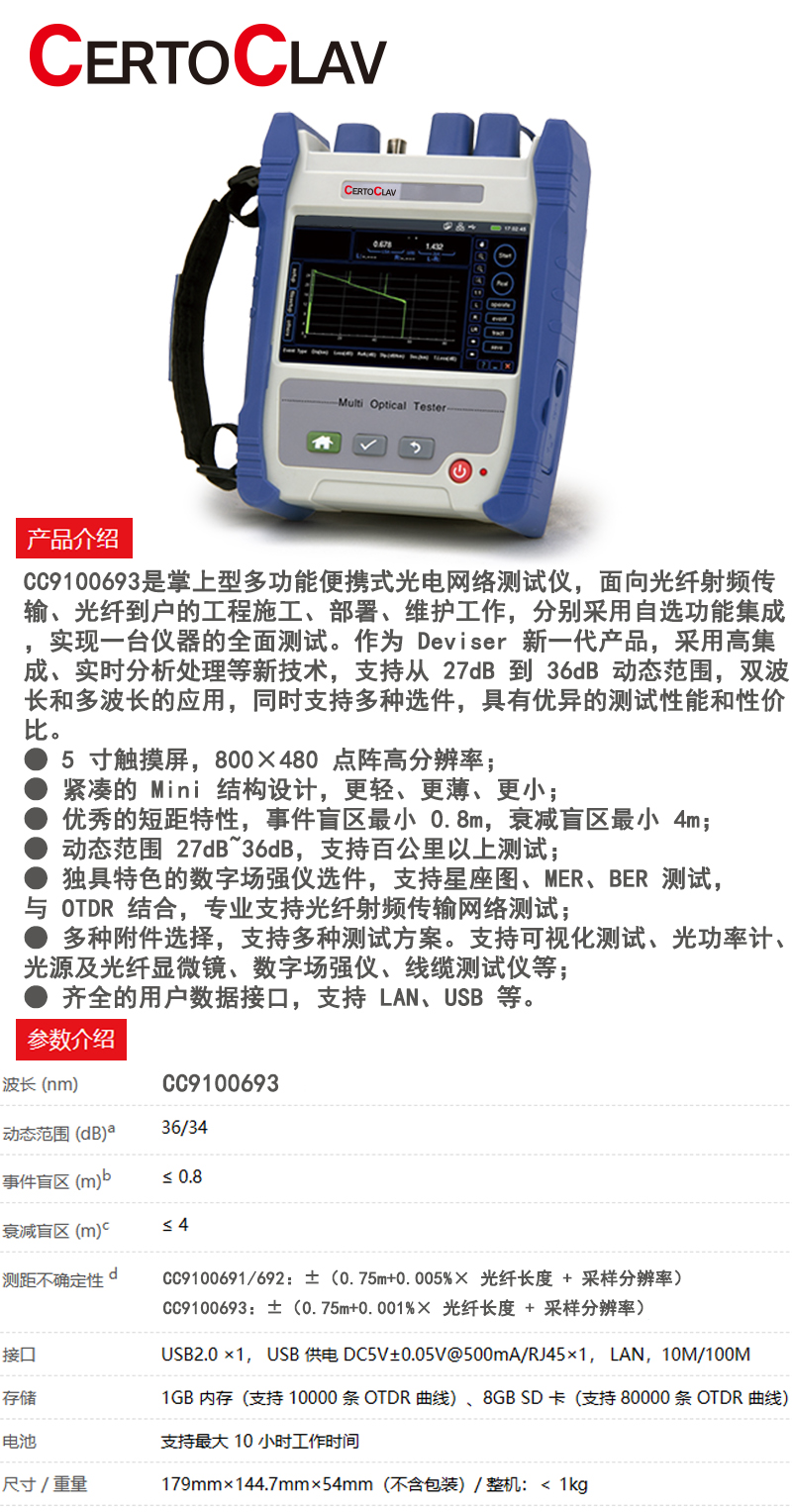 K23478 CC9100693 LAN,USB 27~36dB 便携式光电网络测试仪 22968.00