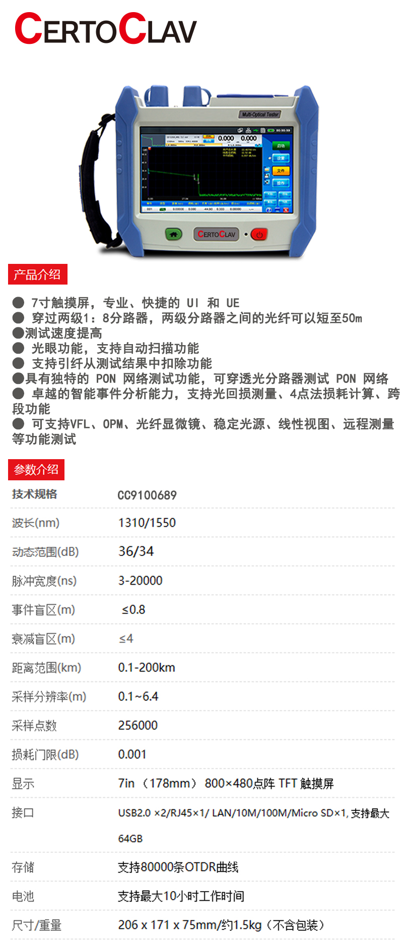K23473 CC9100688 850nm,1300nm 46dB 0.5m OTDR光时域反射分析仪 19969.40