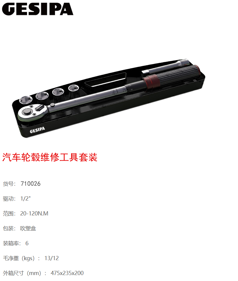驱动:1/2" 范围:20~120N.m