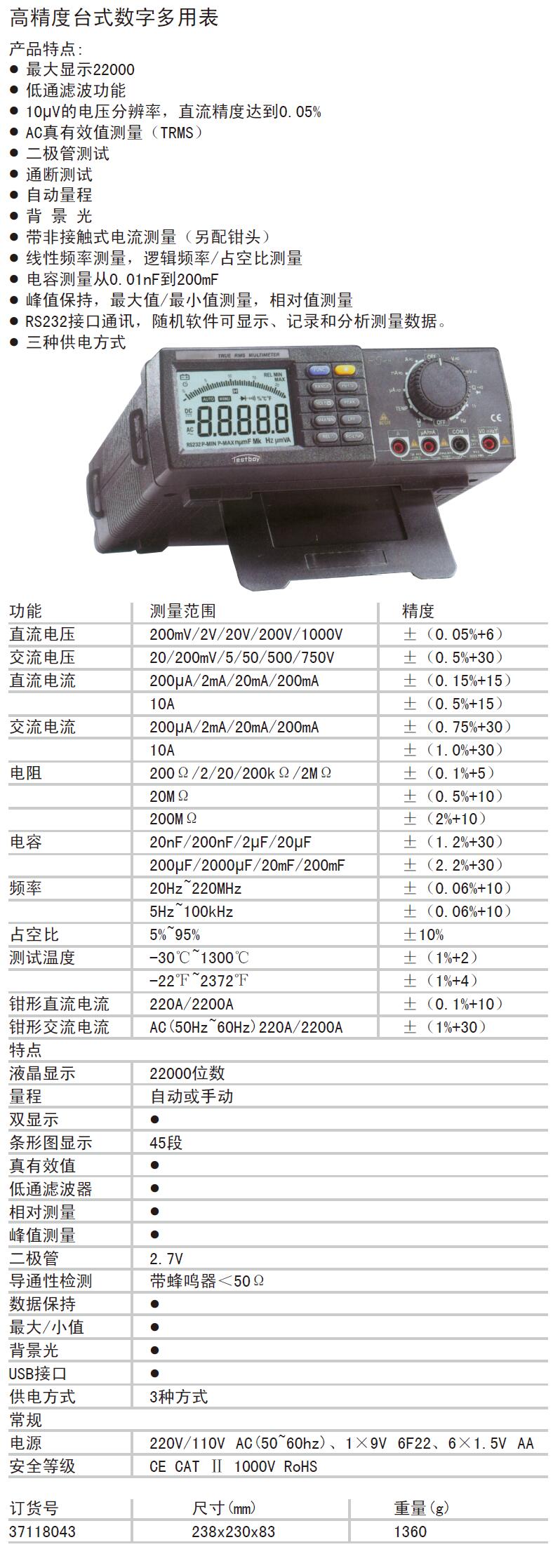 订货号:  A51387 品牌:  TESTBOY/特博特
