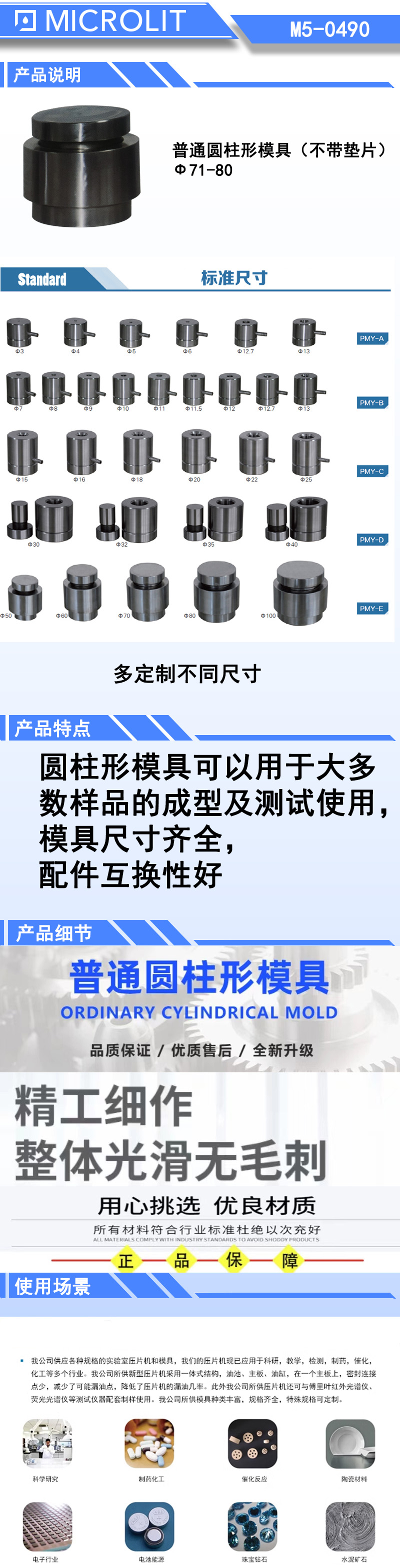 *长方形模具适合一些易成型的细长条样品,也可以根据用户需要定做各种特殊尺寸