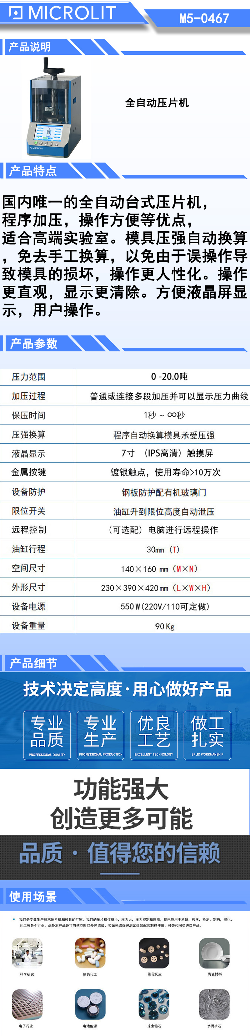 *国内唯一的全自动台式压片机,程序加压,操作方便等优点,适合高端实验室