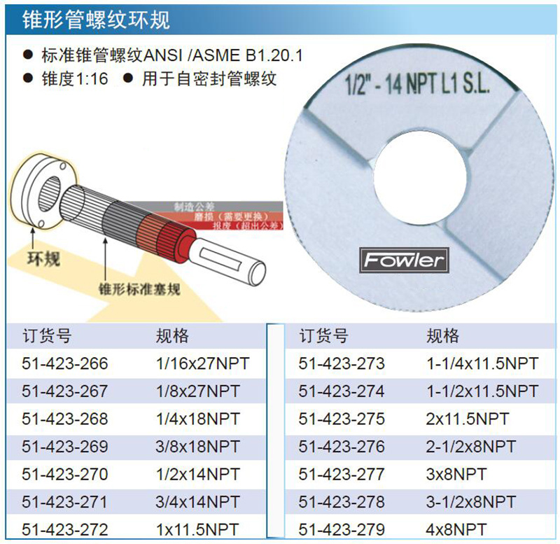 ·标准锥管螺纹ANSI /ASME B1.20.1 ·锥度1:16 ·用于自密封管螺纹