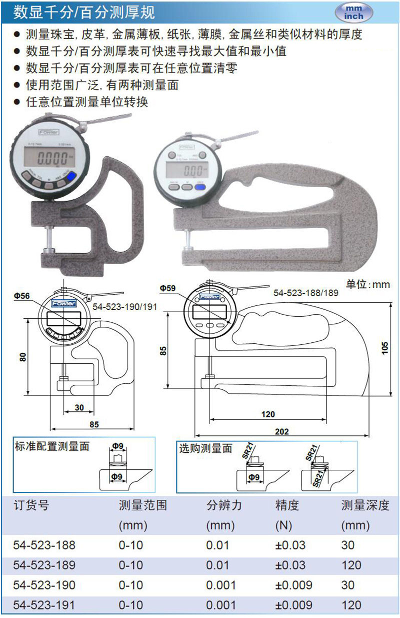 ·测量珠宝,皮革,金属薄板,纸张,薄膜,金属丝和类似材料的厚度