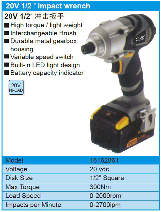 20V 1/2 ″ impact wrench