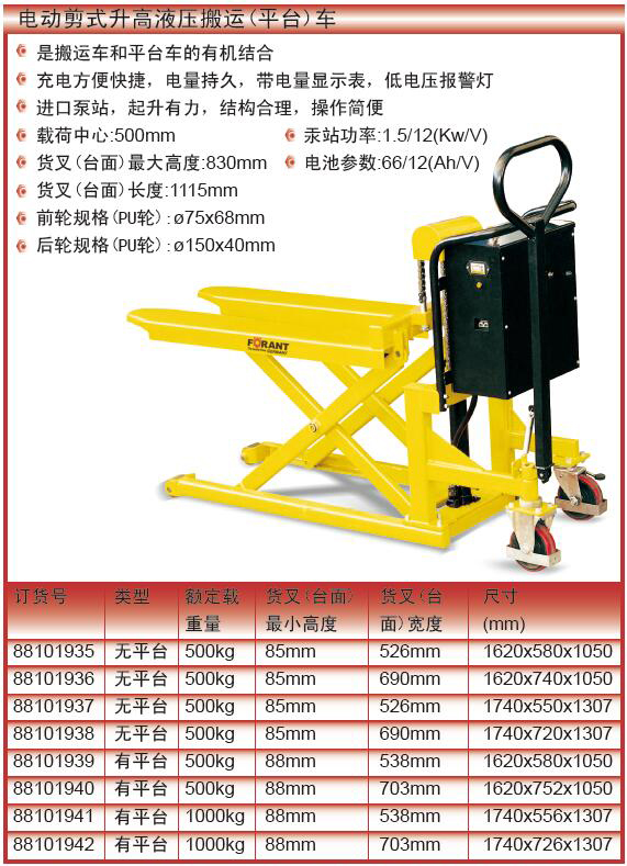 ·进口泵站,起升有力,结构合理,操作简便  载荷中心:500mm