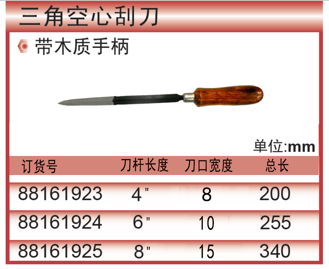 A14956 88161923 6mm 250mm —— 带木质手柄 —— 6mm 150mm 272.00