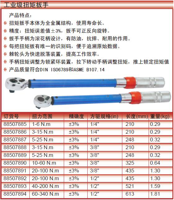 ·精度:扭矩误差值±3%,扳手可正反向旋转。