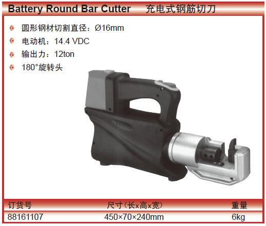 ·圆形钢材切割直径:Ø16mm ·电动机:14.4VDC ·输出力:12ton ·180°旋转头