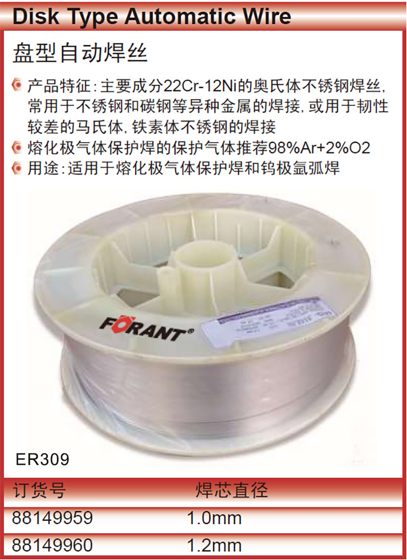 直径1.2mm;牌号 ER309;15kg/盘