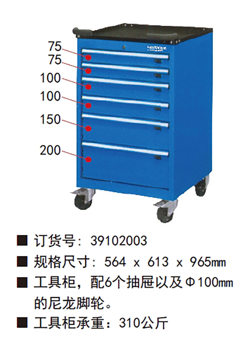 ·配6个抽屉以及Φ100mm的尼龙脚轮。