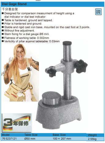 ·设计用于使用拨号指示器或拨号测试指示器。桌子经过硬化,研磨和研磨。支柱硬化并磨碎。稳定而坚固的铸铁底座,安装在铸脚上的3个点无需微调。 ·千分表o8mm的阀杆固定。 ·工作台平整度:0.002mm平板可压性:0.03mm