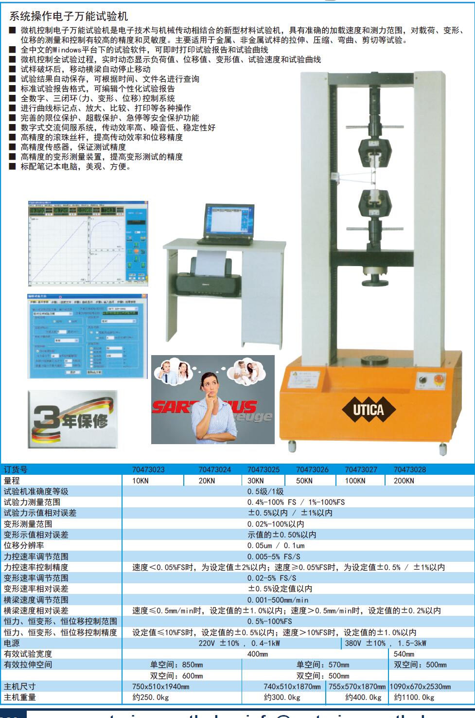 J13065 70473025 30KN 0.5级/1级 0.4%-100%FS/1%-100%FS ±0.5%以内/±1%以内 0.02%-100%以内 示值的±0.50%以内 0.05um/0.1um 0.005-5%FS/S 速度<0.05%FS时,为设定值±2%以内;速度≥0.05%FS时,为设定值±0.5%/±1%以内 0.02-5%FS/S ±0.5%设定值以内 0.001-500mm/min 速度≤0.5mm/min时,设定值的±1.0%以内;速度>0.5mm/min时,设定值的±0.2%以内 0.5%-100%FS 设定值≤10%FS时,设定值的±0.5%以内;速度>10%FS时,设定值的±1.0%以内 220V±10%,0.4-1kW 400mm 单空间:570mm 双空间:500mm 740×510×1870mm 约300.0kg 293538.46