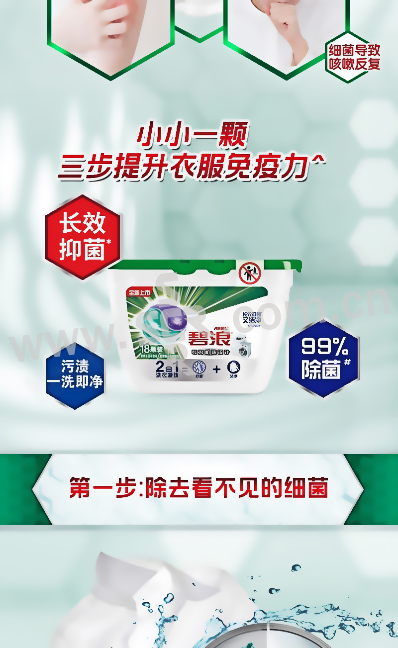 ARIEL/碧浪 除菌更抑菌海洋洗衣凝珠 6903148304440 18颗 1盒