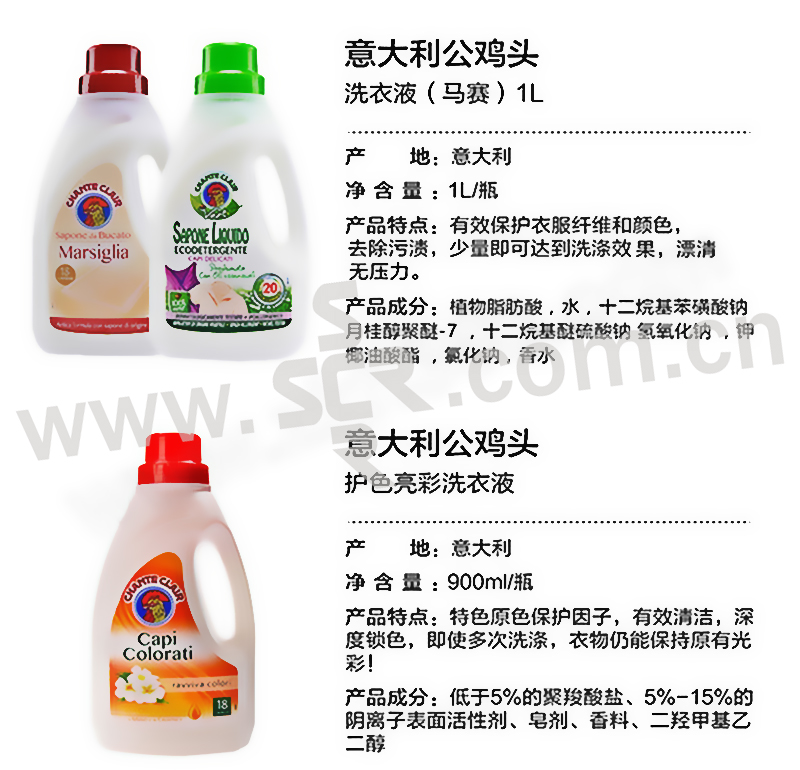 CHANTE CLAIR/大公鸡头 洗衣液(白麝香) 8015194101237 1L 1瓶