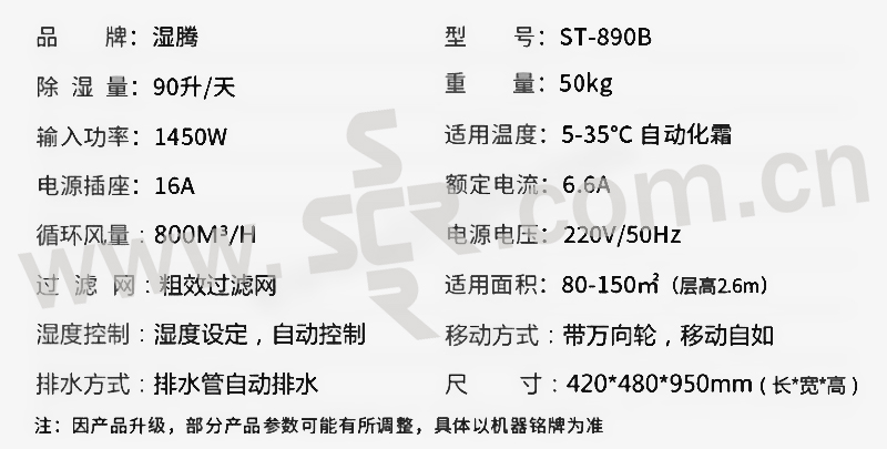 SHITENG/湿腾 工业除湿机 ST-890B 220V 1450W 90L/D 1台