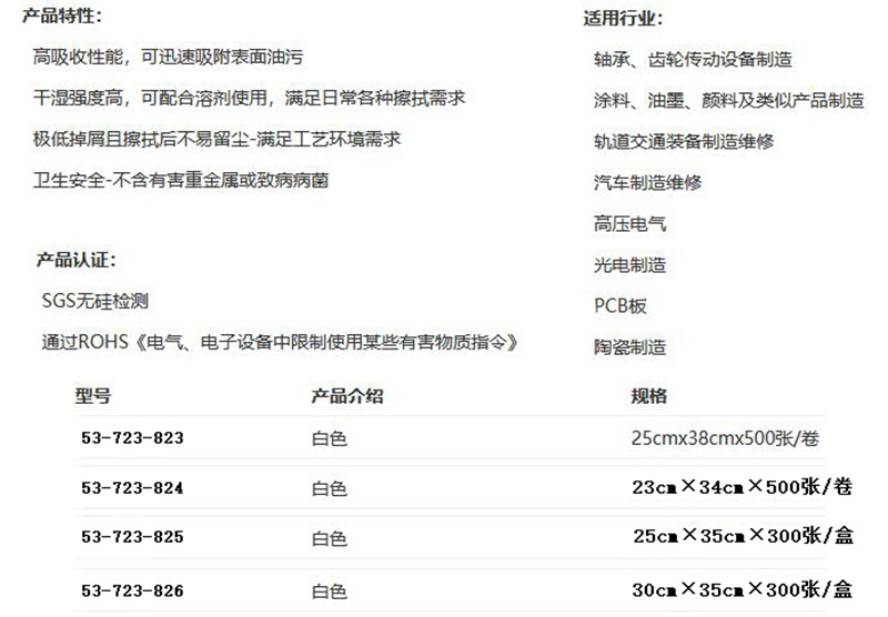 ·吸水性好,干湿强度高,可配合溶剂使用,满足日常各种擦拭需求; ·不褪色,不含硅树脂,不含有害重金属或致病病菌。