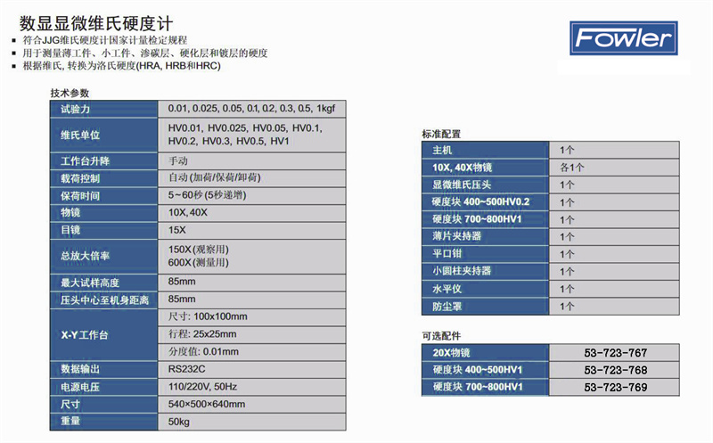 ·用于测量薄工件、小工件、渗碳层、硬化层和镀层的硬度;根据维氏,转换为洛氏硬度(HRA,HRB,HRC)
