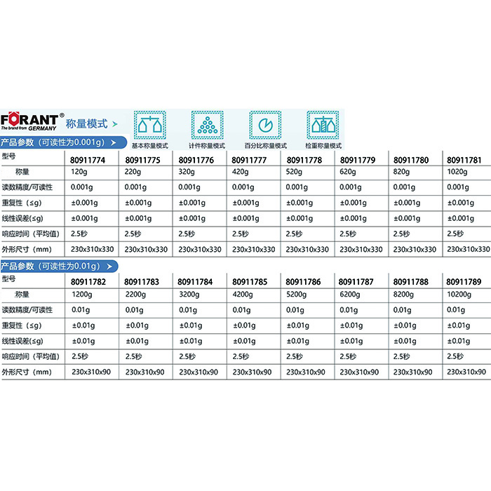 A30310 80911774 0-120g 0.001g ±0.001g ±0.01g 2.5秒 230×310×30mm 3542.00
