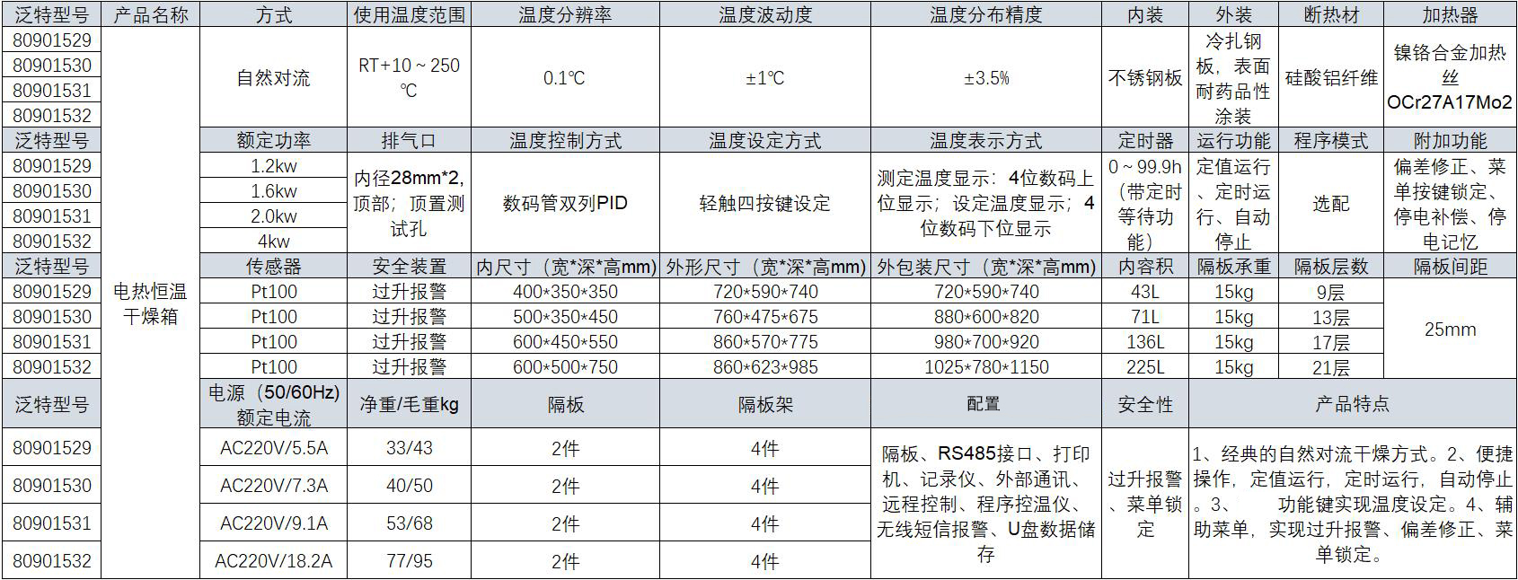 ·经典的自然对流干燥方式。 ·便捷操作,定值运行,定时运行,自动停止。 ·专用功能键实现温度设定。 ·辅助菜单,实现过升报警、偏差修正、菜单锁定。 ·可增加配置:隔板、RS485接口、打印机、记录仪、外部通讯、远程控制、程序控温仪、无线短信报警、U盘数据储存 ·安全性:过升报警、菜单锁定