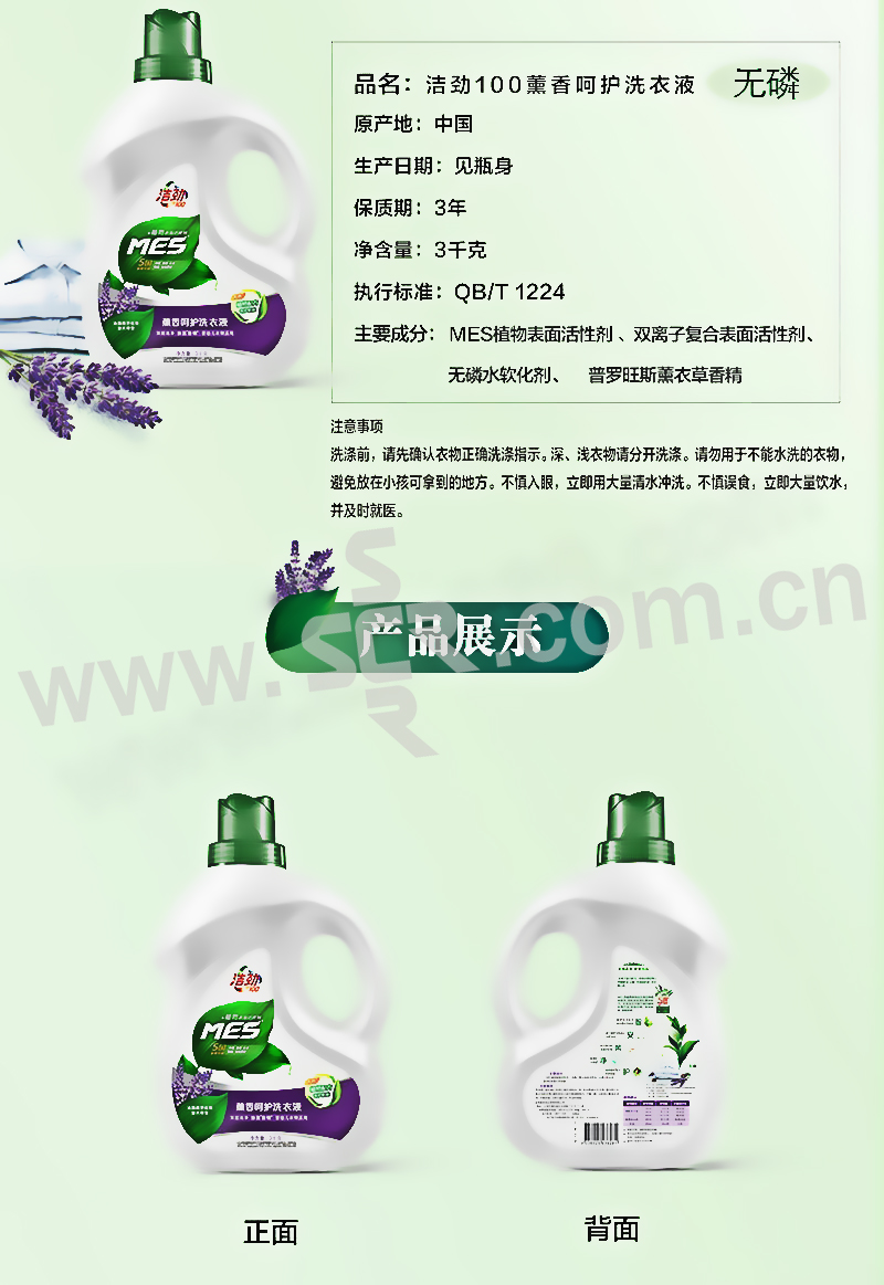JIEJIN/洁劲100 薰香呵护洗衣液 6948195820581 3kg 210×70×320mm 1瓶