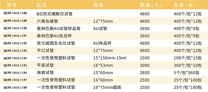 ·试管系列以优质PP、PS材料制造,试管透亮平整,化学耐受性强,其中PP抗弱酸弱碱及有机溶剂,耐高温, ·可提供各种规格,平底、圆底以及各种长度。