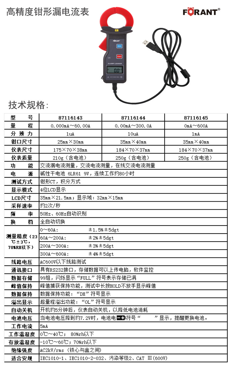 高精度钳形漏电流表