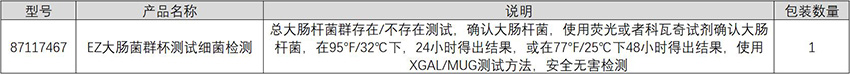 ·总大肠杆菌群存在/不存在测试,确认大肠杆菌,使用荧光或者科瓦奇试剂确认大肠杆菌,在95°F/32℃下,24小时得出结果,或在77°F/25℃下48小时得出结果,使用XGAL/MUG测试方法,安全无害检测