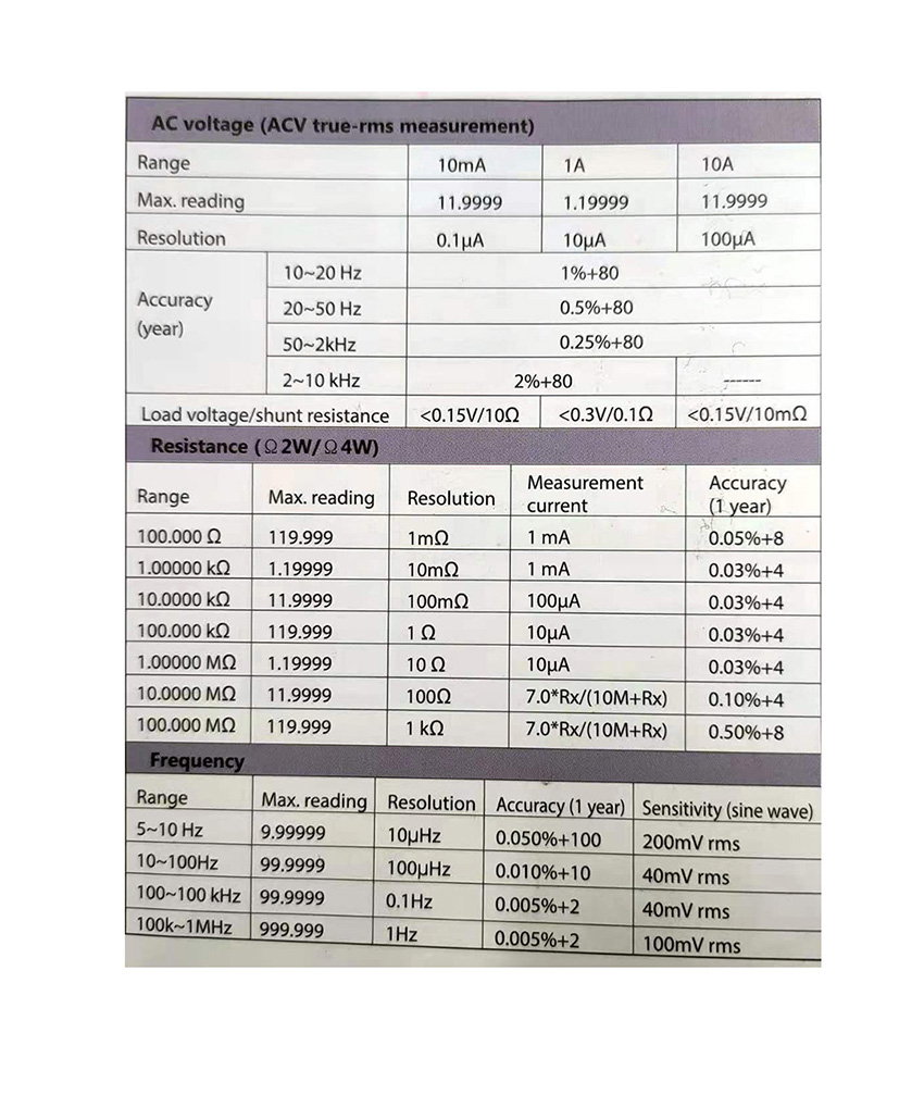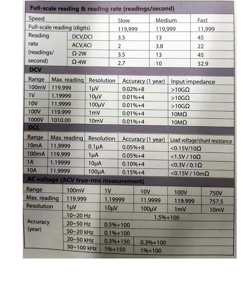 订货号 制造商型号 直流电压量程 交流电压量程 直流电流量程 交流电流量程 电阻 全量程读数(数字)1199999 DCV,DCI‘ACV,ACI、Ω-2W 全量程读数(数字) 价格 购物车