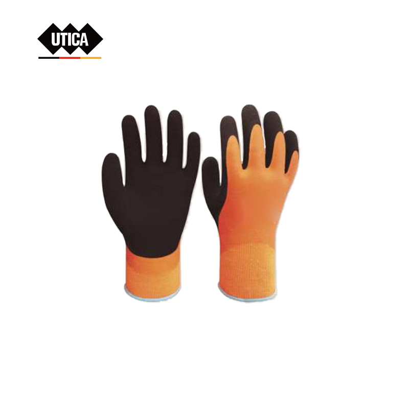 10针粗涤棉拉绒纱线黑色乳胶皱纹手套