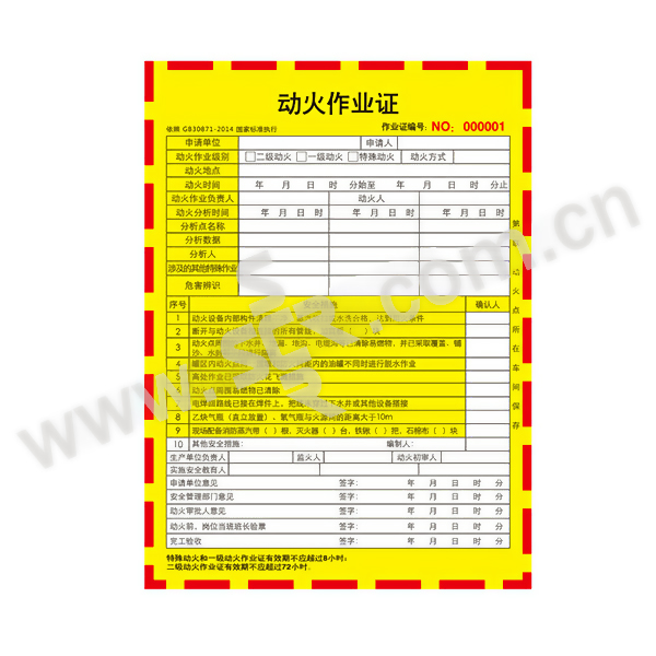 SAFEWARE/安赛瑞 安全作业许可单(动火