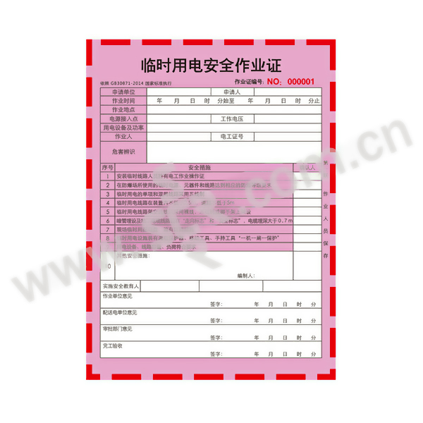 SAFEWARE/安赛瑞 安全作业许可单(临时