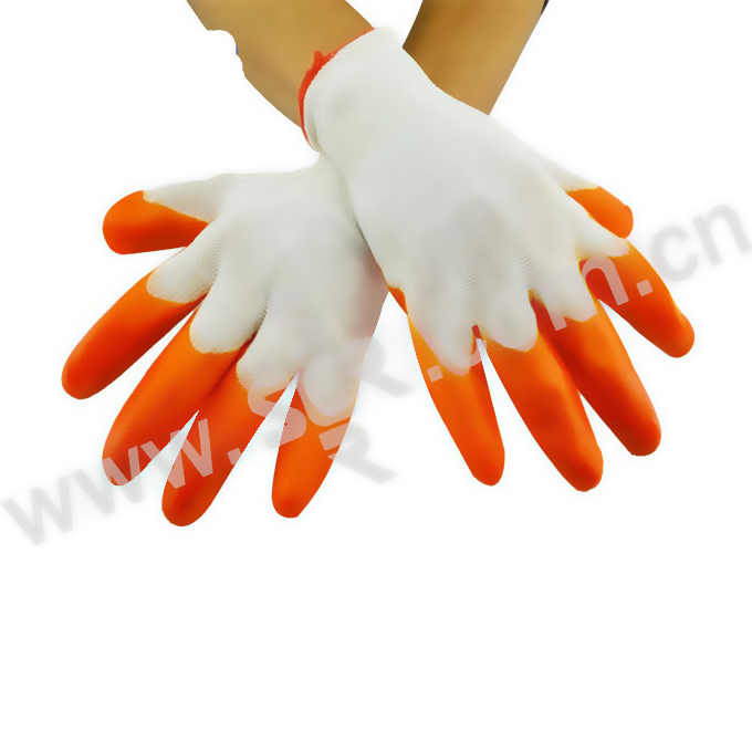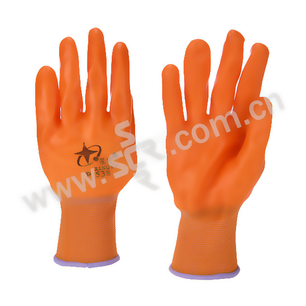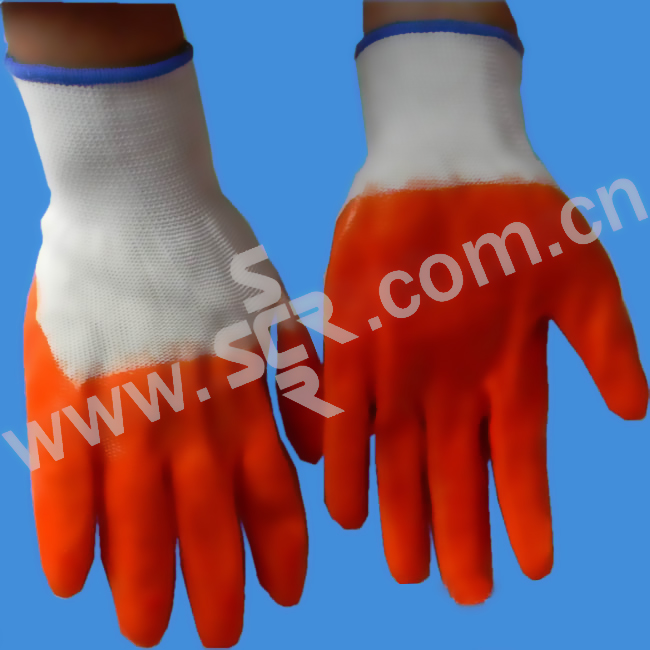 F/福安特劳 PVC挂胶手套 橘色掌浸 均码
