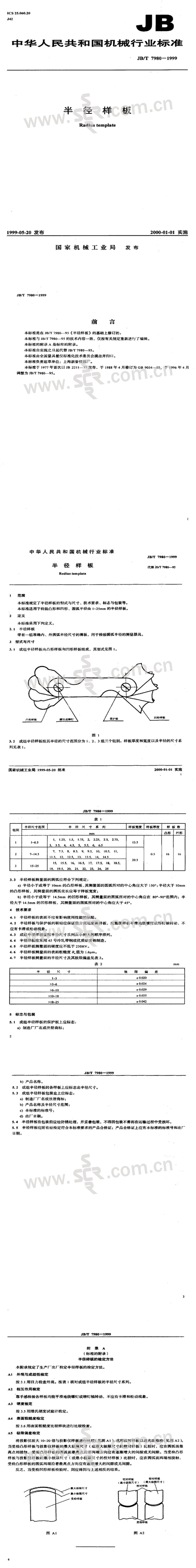 JB∕T 7980-1999半径样板