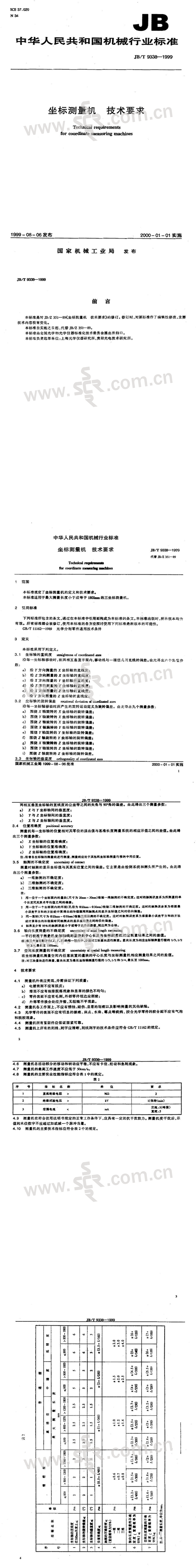 JB∕T 9338-1999坐标测量机