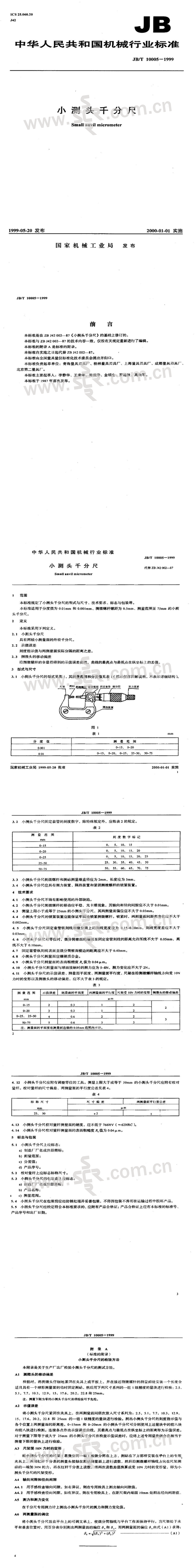 JB∕T 10005-1999小测头千分尺 > JB∕T 10005-1999小测头千分尺