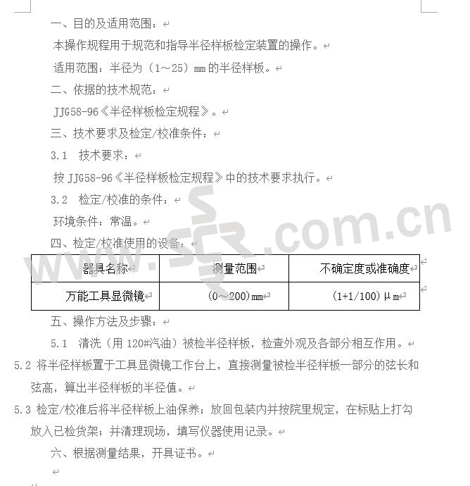 JJG58~1996 半径样板检装置操作规程