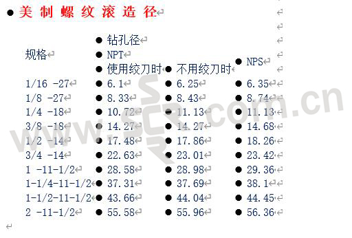 美制螺纹滚造径