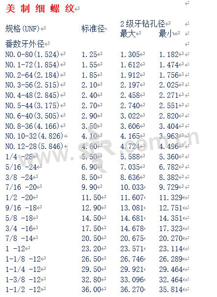 美制细螺纹 > 美制细螺纹